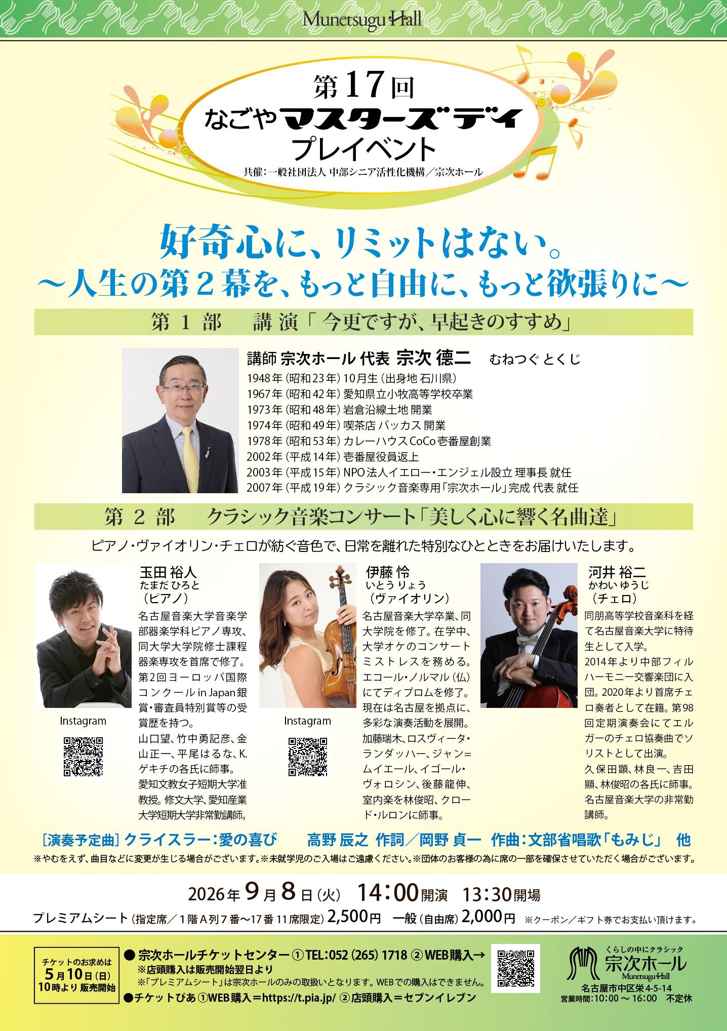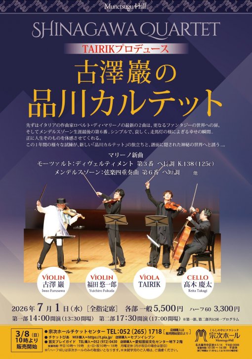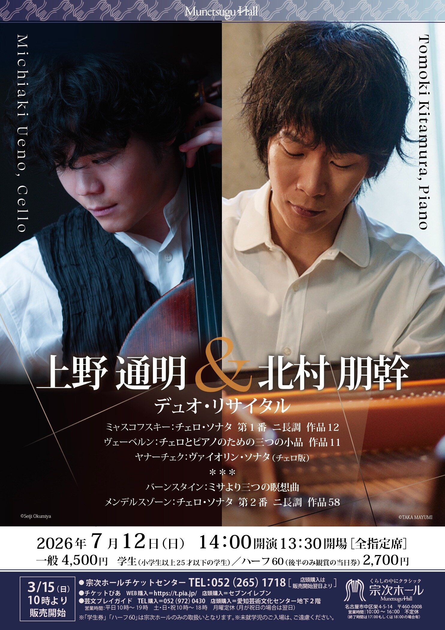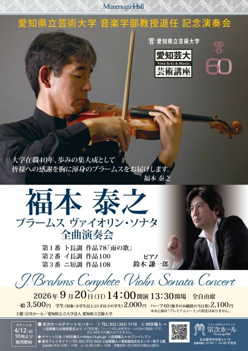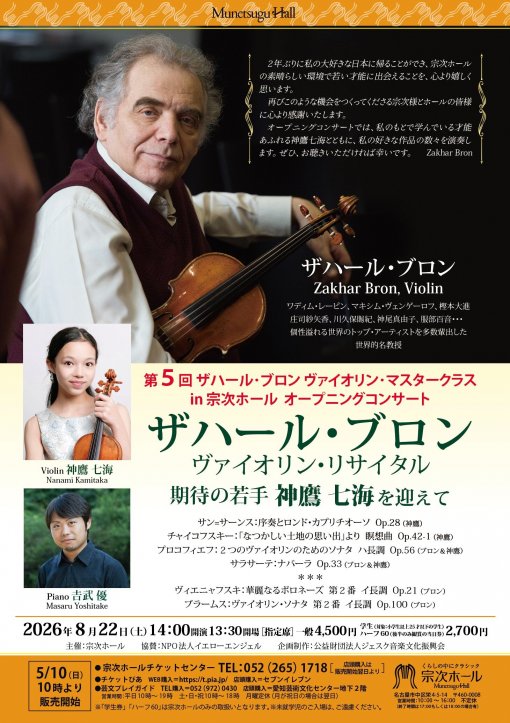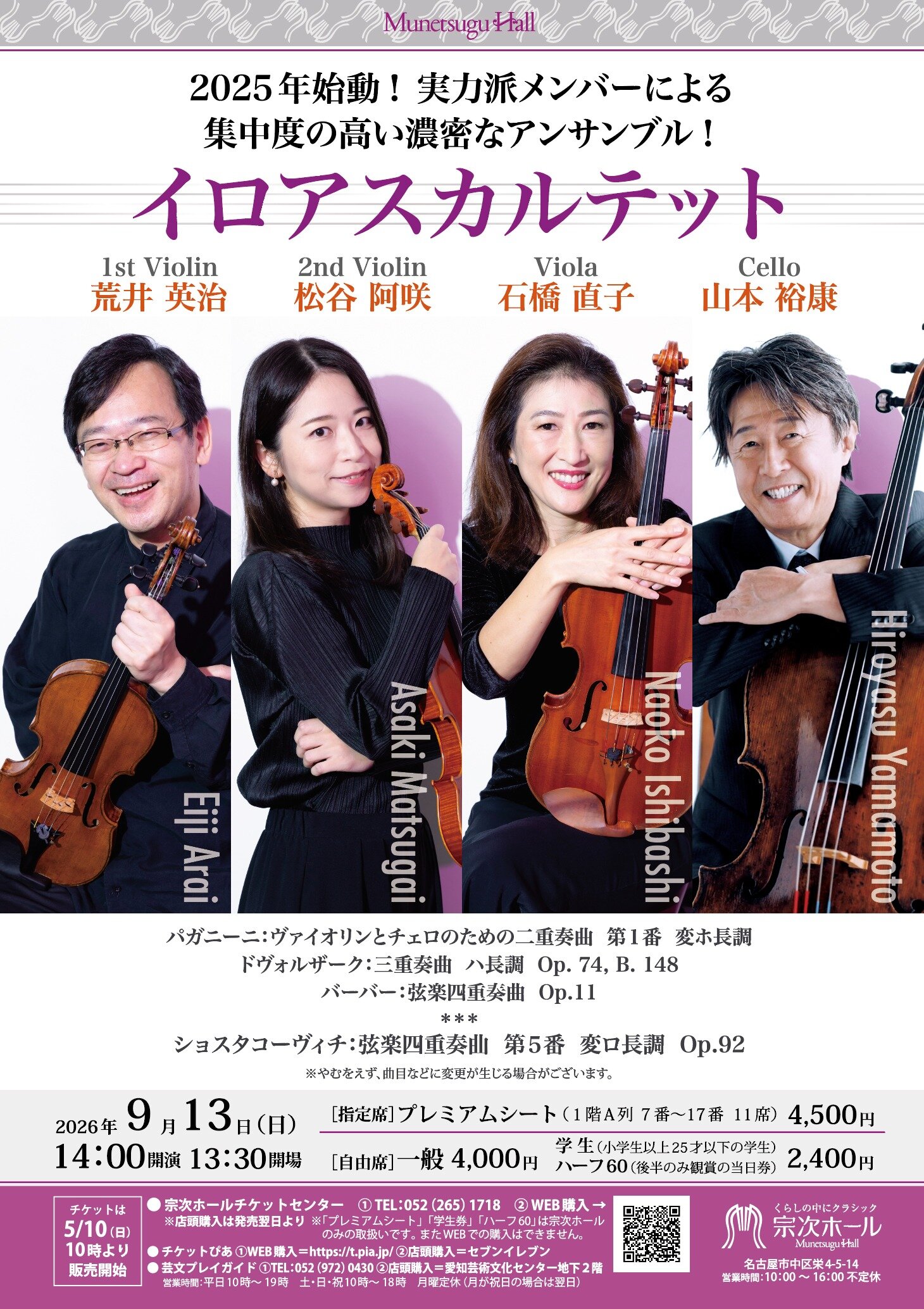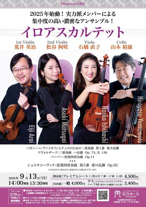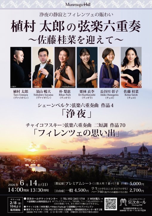 お知らせ 2026年3月13日 チラシ・ギャラリー このページでは、この先の宗次ホール主催公演のチラシを一度にぱっと見ることができるコーナーです。どうぞコンサート選びにお役立てください。 「夏の景色〜花、空、海、川、花… 4月12日(日)・13日(月)・19日…