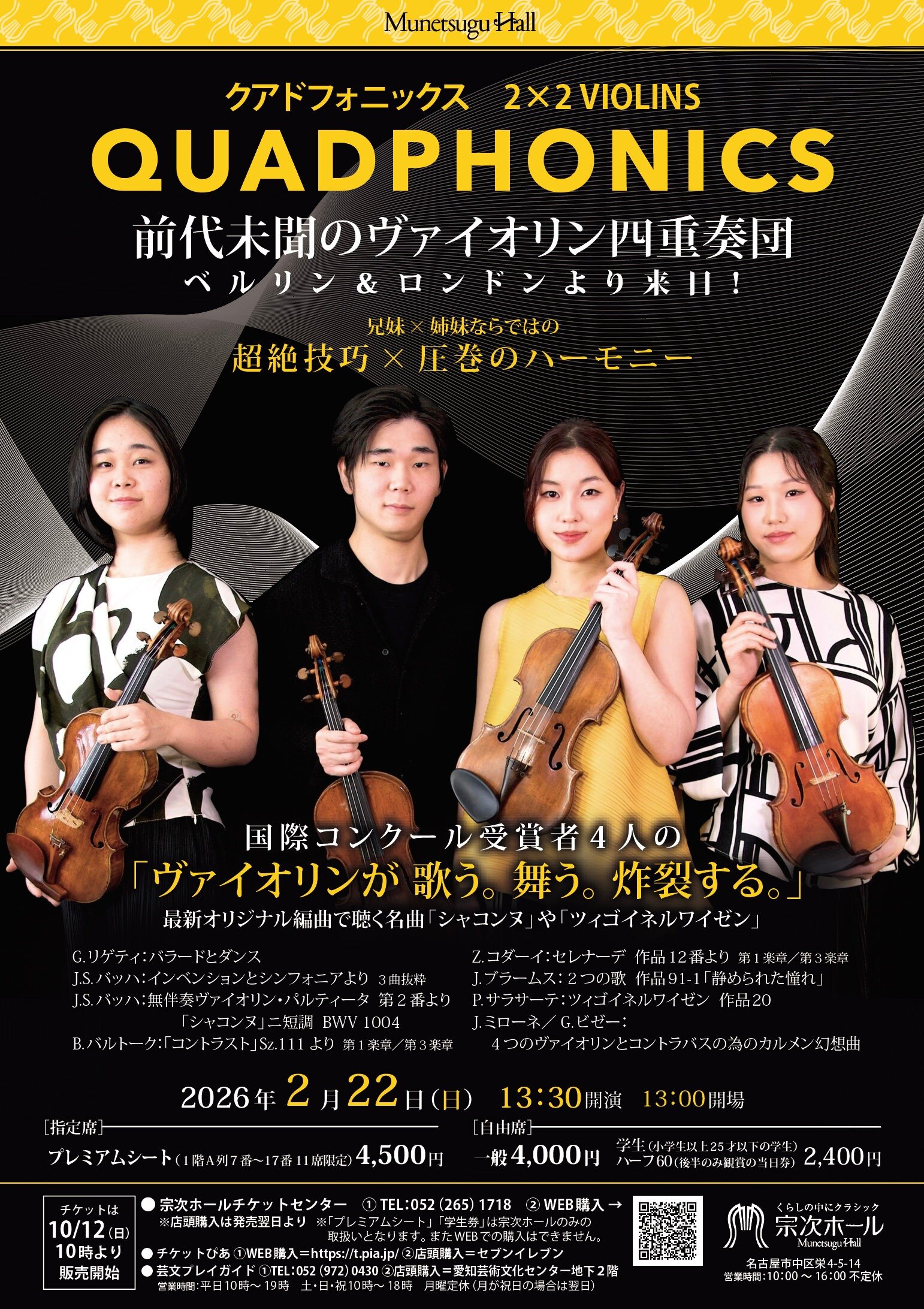 クアドフォニックス 2×2 VIOLINS:垣内響太、垣内絵実梨、富田心、富田夢(ヴァイオリン)