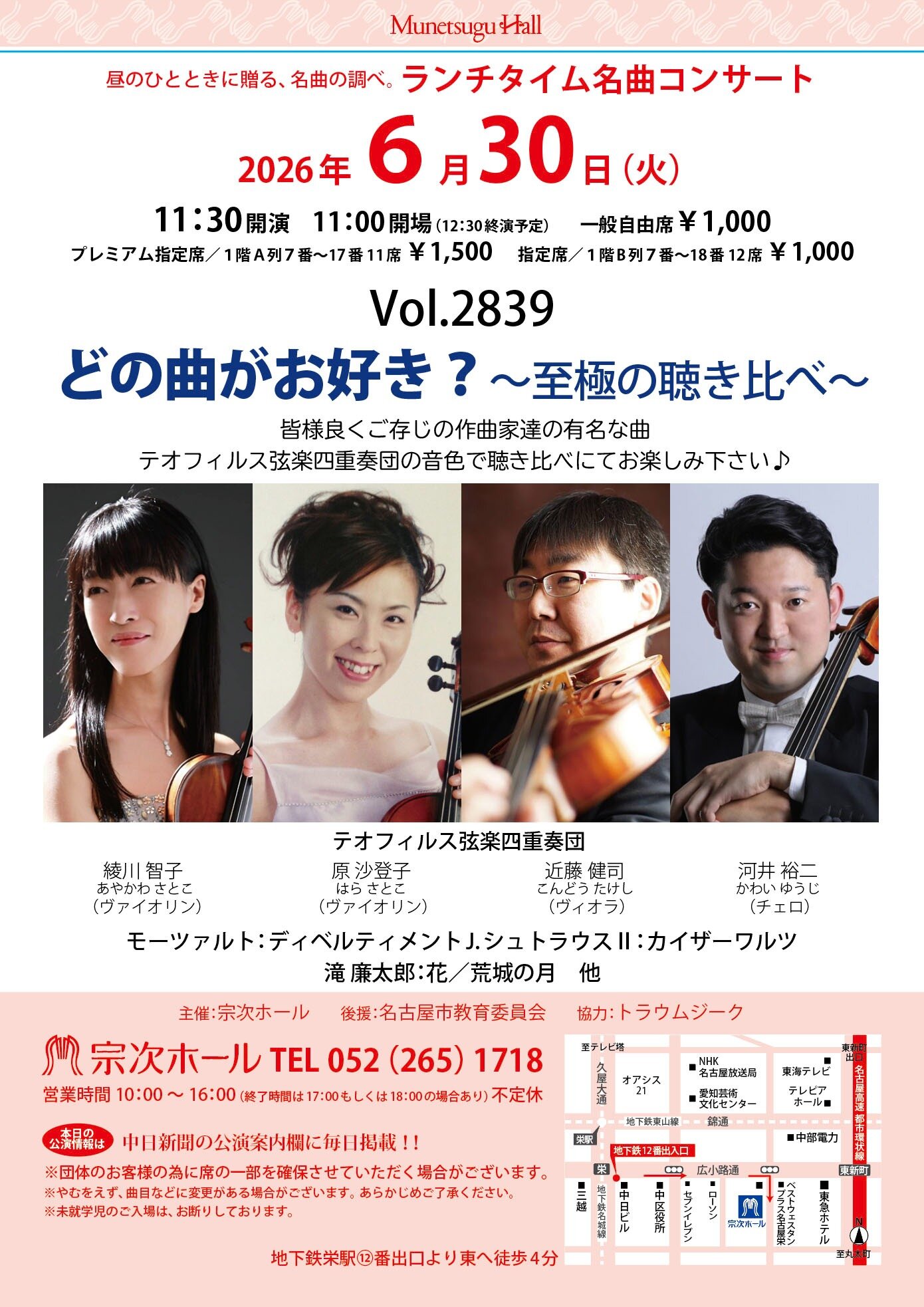 テオフィルス弦楽四重奏団:綾川智子、原沙登子(ヴァイオリン)近藤健司(ヴィオラ)河井裕二(チェロ)