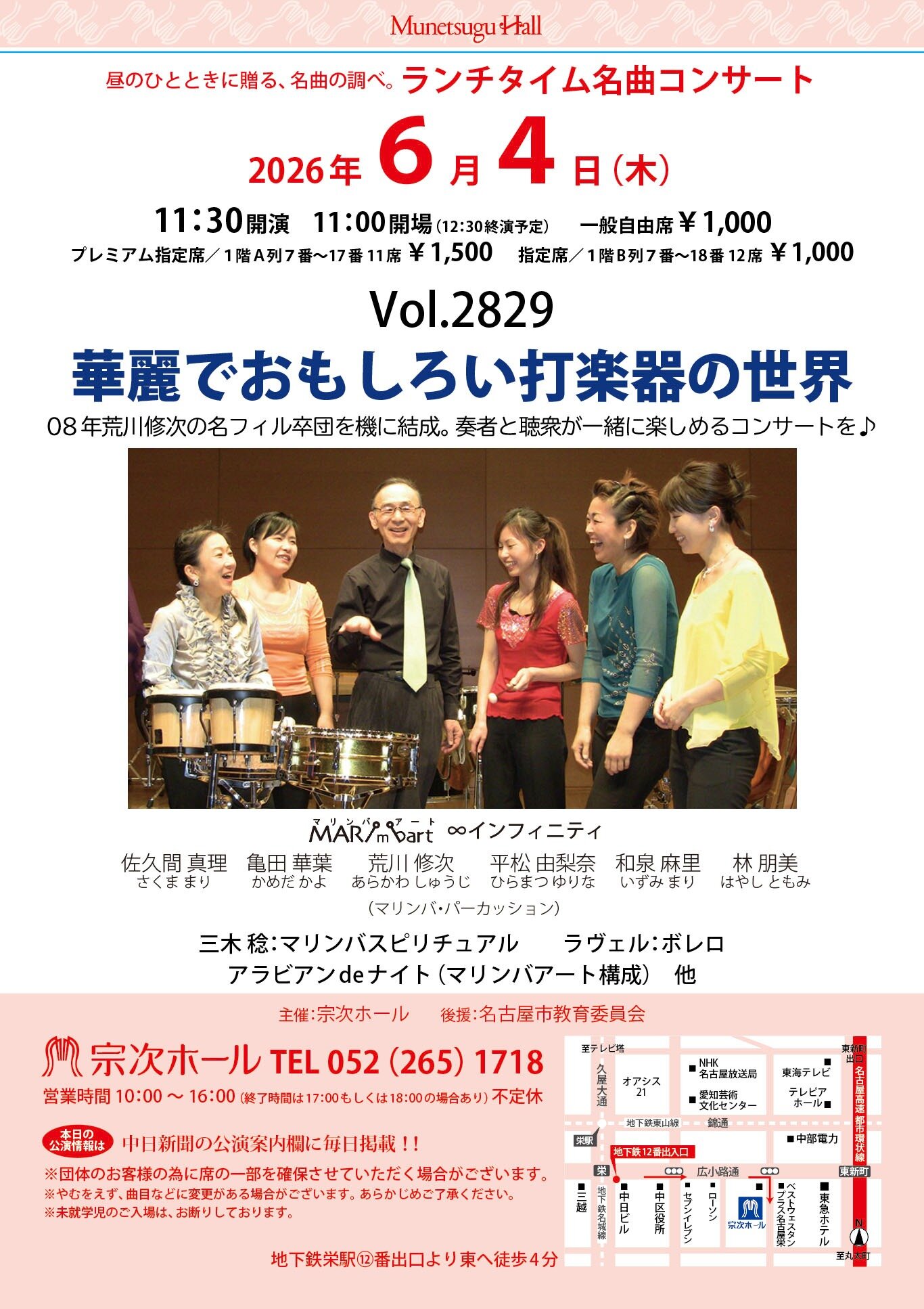 マリンバアート∞インフィニティ:荒川修次、亀田華葉、平松由梨奈、林朋美、佐久間真理、和泉麻里(マリンバ・パーカッション)