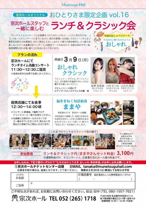 宗次ホールスタッフと一緒に楽しむ ランチ&クラシック会
