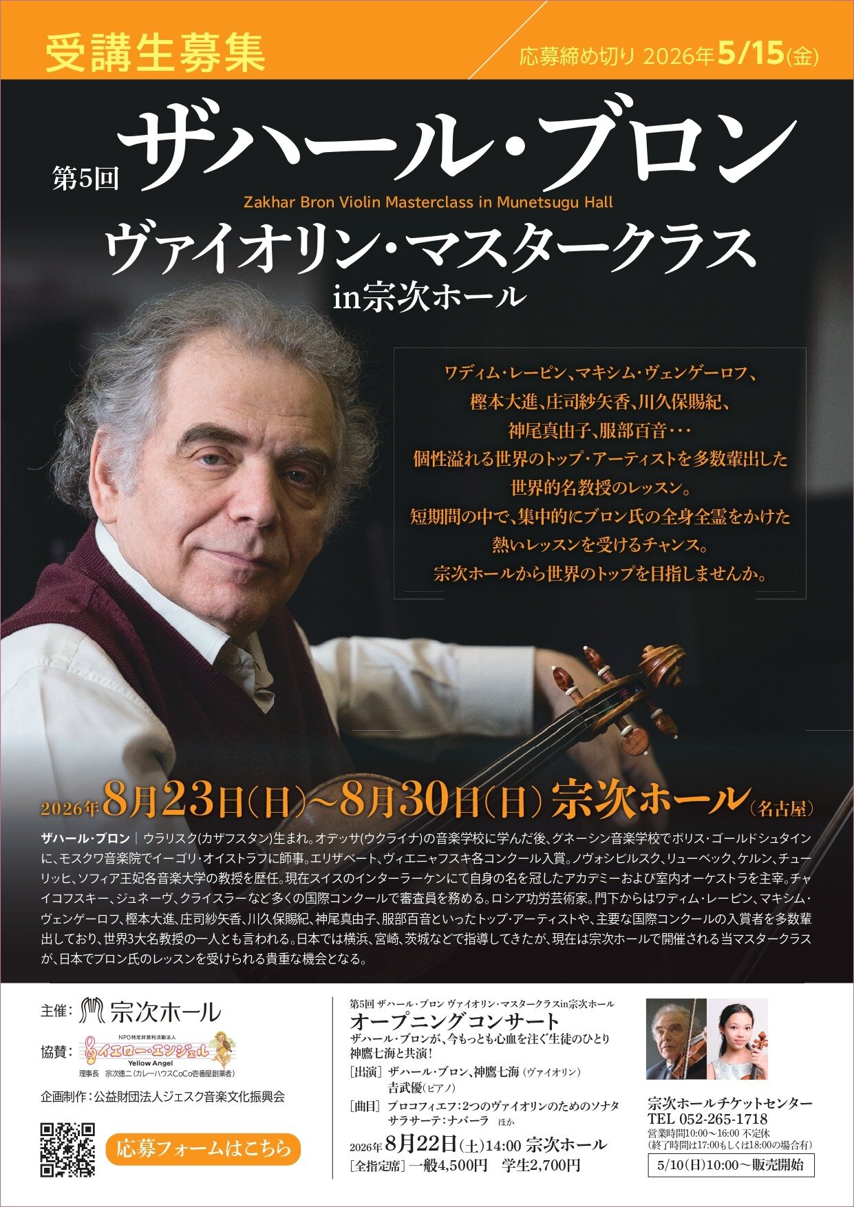 第5回 ザハール・ブロン ヴァイオリン・マスタークラス in 宗次ホール オープニングコンサート