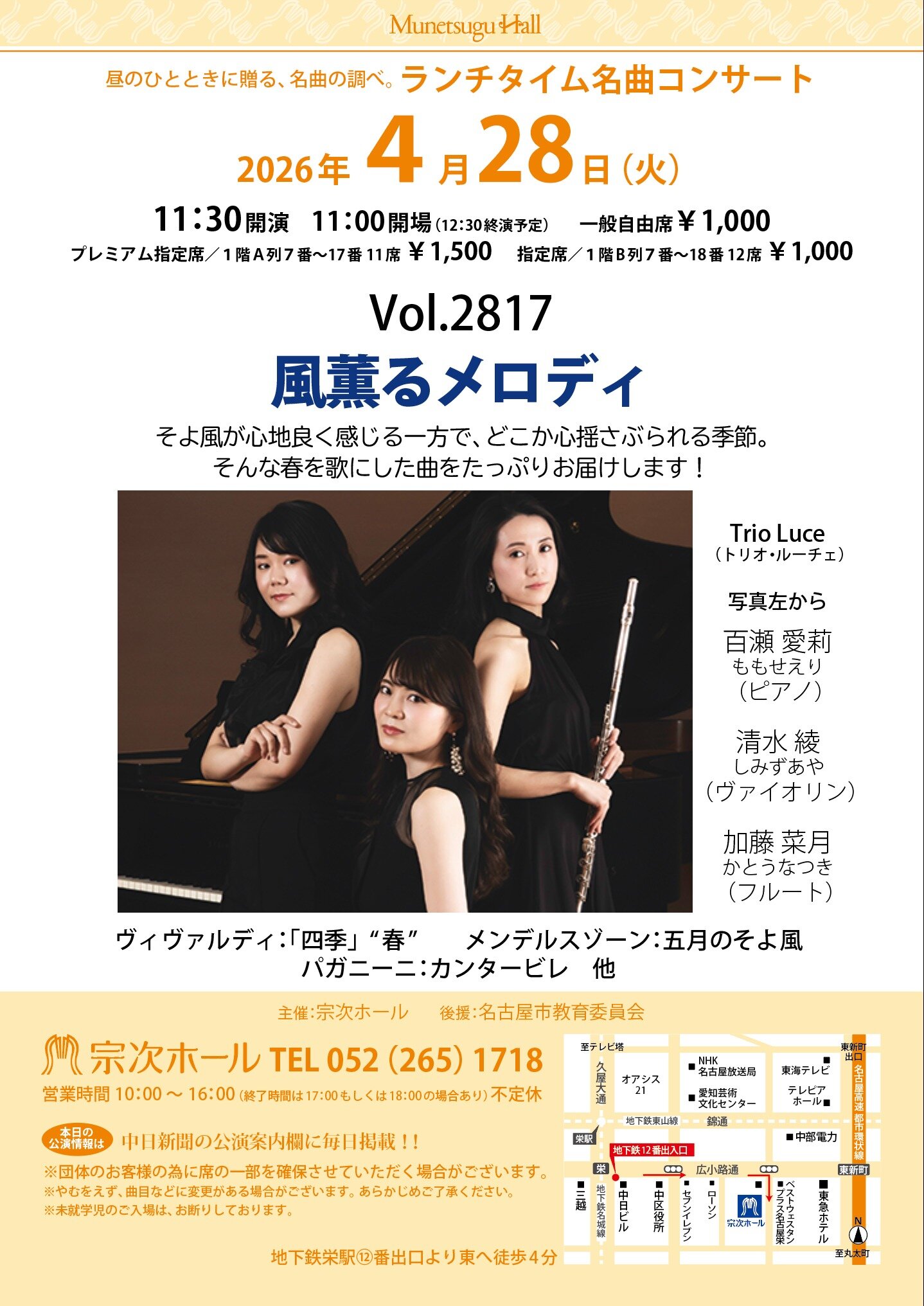 Trio Luce(トリオ・ルーチェ)百瀬愛莉(ピアノ)清水綾(ヴァイオリン)加藤菜月(フルート)