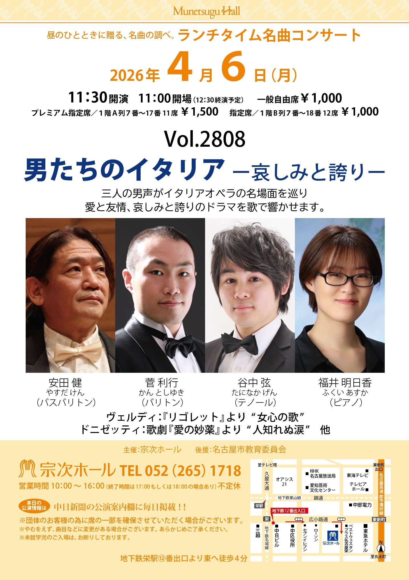 安田健(バスバリトン)菅利行(バリトン)谷中弦(テノール)福井明日香(ピアノ)
