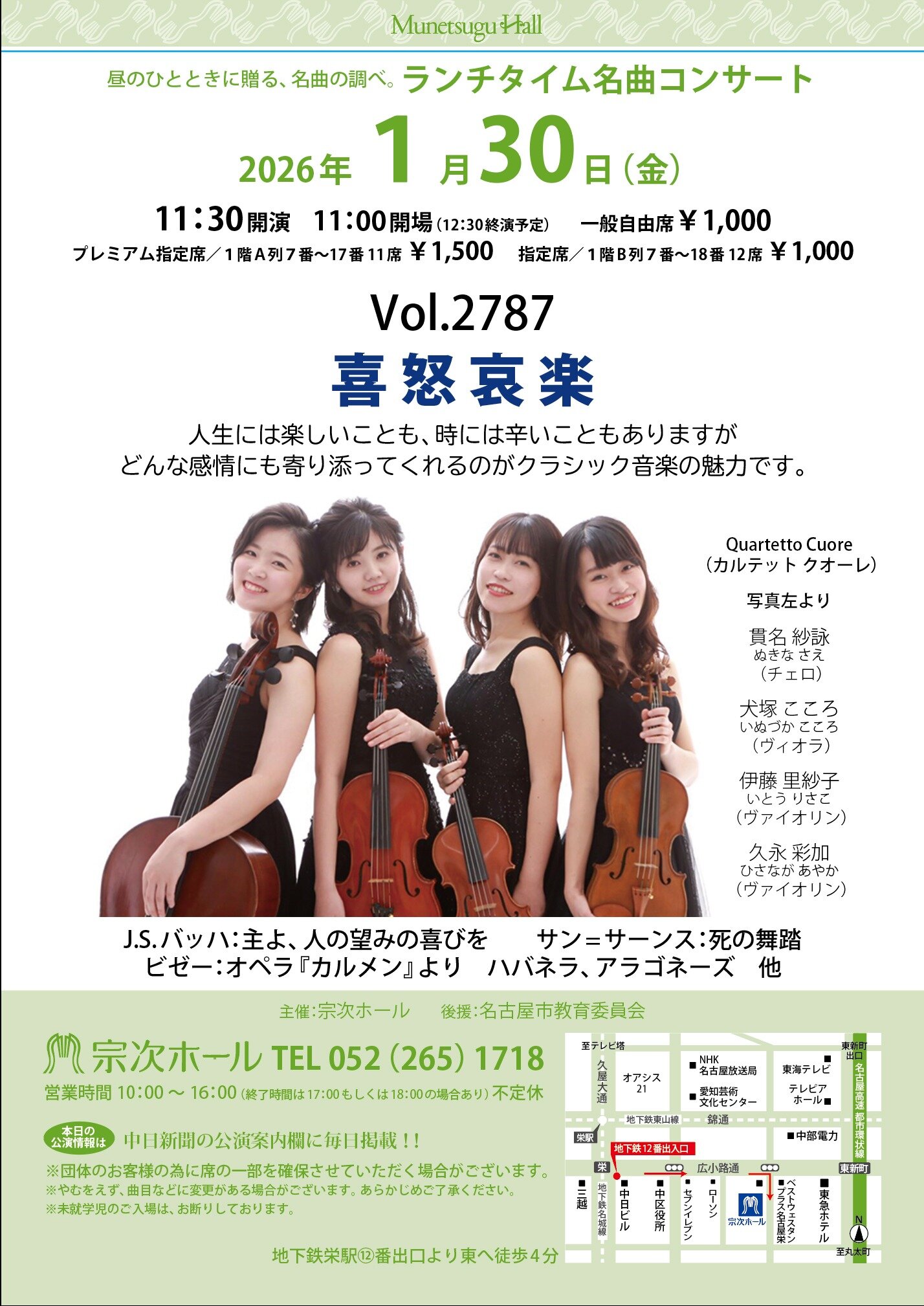 Quartetto Cuore(カルテット クオーレ):伊藤里紗子、久永彩加(ヴァイオリン)犬塚こころ(ヴィオラ)貫名紗詠(チェロ)