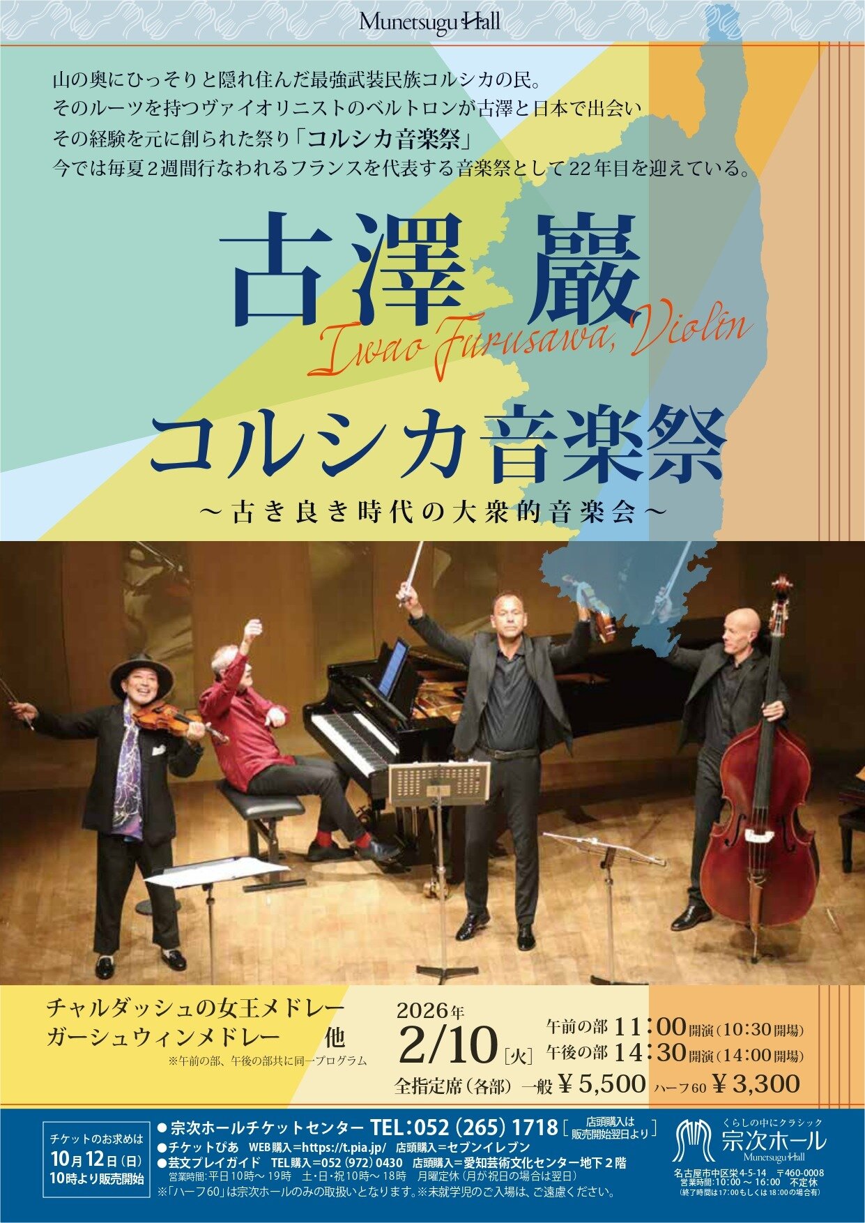ベルトロン・セルベラ(ヴァイオリン・コルシカ音楽祭総監督)古澤巖(ピアノ)ステファン・プティジャン(ピアノ・アレンジ)シルヴァン・ルプロボス(コントラバス)