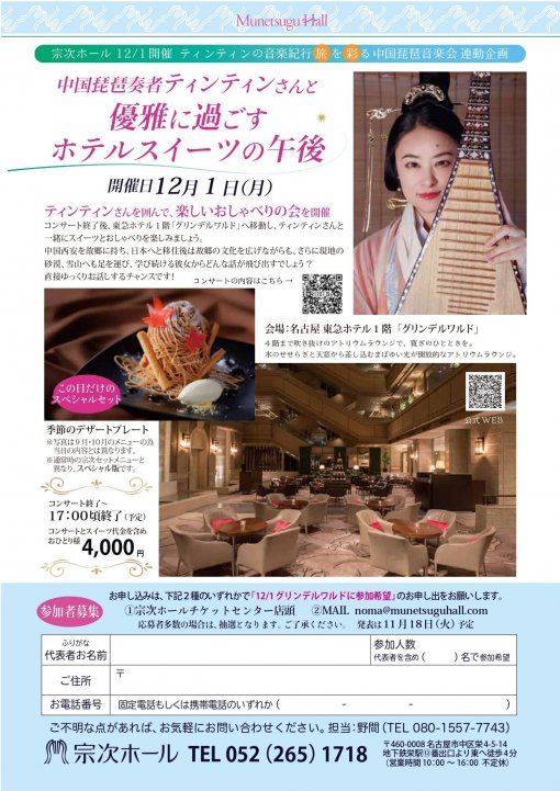 【ティンティンの音楽紀行 旅を彩る 中国琵琶音楽会】 連動企画
